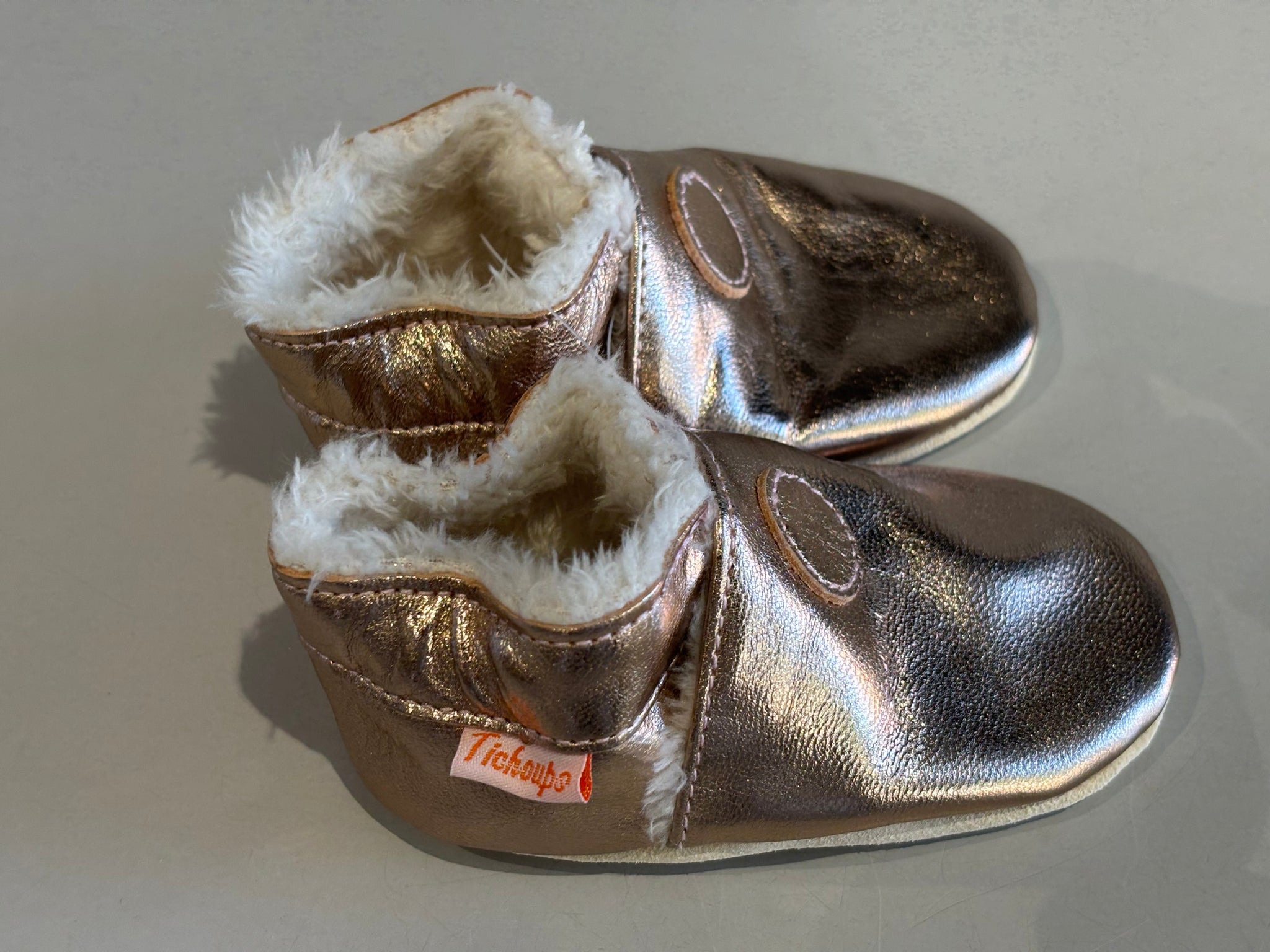 Chaussons tichoups rose métallique fourré