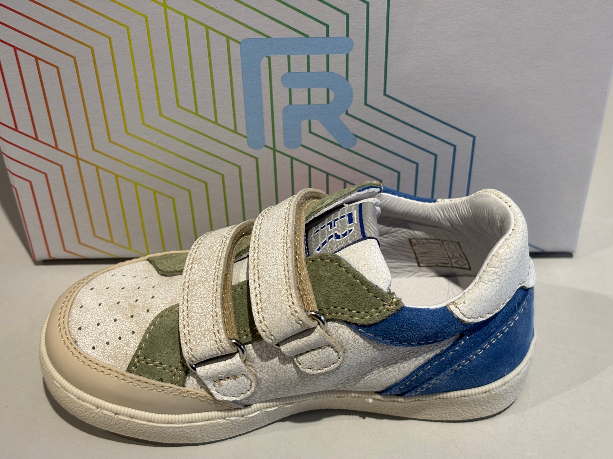 Chaussures basses Romagnoli 8199F026 scratch blanc kaki orange